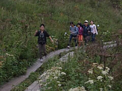 班で声をかけ合って                                      八島湿原までのハイキングを終えて
