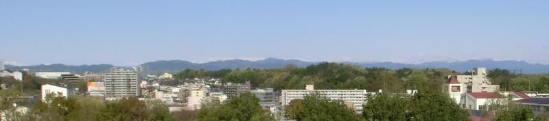 秩父方面(黒っぽい山の奥に白い関東山地が見えます。)