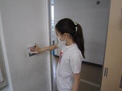 毎日、児童下校後に共用する場所を教員が消毒しています。
