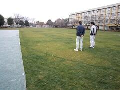 本校の全面芝生校庭は、多摩市教育委員会が芝生校庭管理の専門の方に委託して