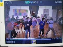 中休みに音楽室で行います。録画した画像を教室で見ることができます。