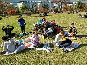 午前中の活動を終えて、ビッグサイトの近くにある防災公園で昼食です。
