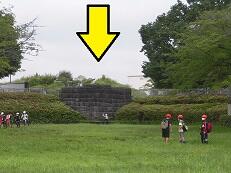 この一直線の道の方向が富士山の方向なのです。天気がよければ矢印に富士山が見えます。