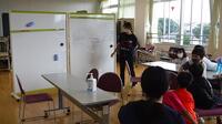 画像は、特活室で防災に必要な事柄を子供たち自身から意見し、学生の皆さんが上手に取り上げてくださっているところです。