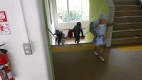 子どもたちが笑顔で階段を上り、教室へ向かってきます。