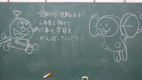 教室では、先生たちのメッセージが子どもたちを迎えました。