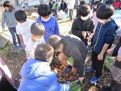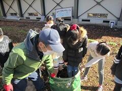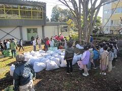 今日に先立って、4年生は掃除の時間などを使ってケヤキやコナラの落葉を集めていました。