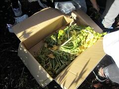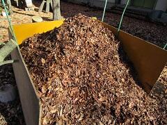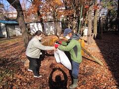 を繰り返しながら、かごがパンパンになるまで落葉を入れていきます。