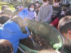 4年 ゴーヤカーテンプロジェクト 堆肥作り