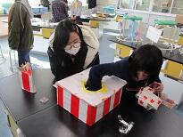 割りばし鉄砲でつくった射的と、ペットボトルキャップを自作のポイですくうゲームです。