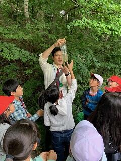北本自然公園で昼食をとった後、希望別で虫取り、自然観察、館内見学の3つに分かれて、
