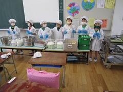 給食の準備の仕方、給食当番の仕事の仕方、配膳の仕方を学習した後、いよいよ本番です。
