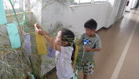 地域から譲り受けた竹に、七夕飾りを装飾しています。