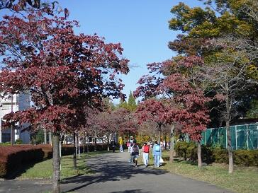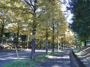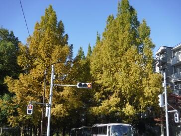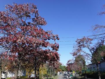 学校の西側を通る並木道は、メタセコイヤの葉が黄金色に変容しています。