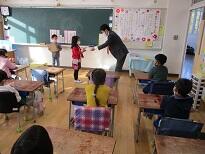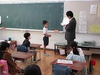 放送で行っている児童朝会で全校に伝え、その後、各教室で校長が直接表彰しました。