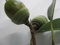 ぼうしの部分(殻斗/かくと)の模様は多重丸(横から見ると横しま)です。