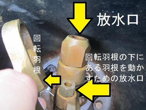 回転しないということは、この小さい放水口から水が出ないので回転羽根に水が当たらず