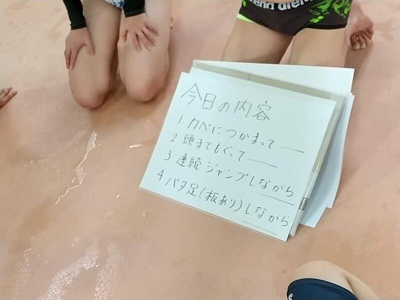 グループによっては、不安な気持ちをもたせないために、今日の練習メニューを確認し合ってからの入水でした。