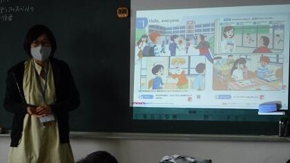 続いて、伴奏の音源に合わせて教室の子供たちも歌います。