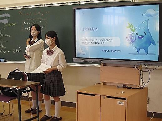 渋谷教育学園渋谷高校から2名の高校生が来校し、「バーチャルウォーター」についての、出張授業をしてくださいました。