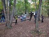 林業体験と森あそび、夕食のカレー作りと夜はお楽しみの館内きもだめしという一日でした。
