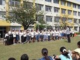 タマボラくんの登場。    本校の合唱団がオープニングを飾ります。