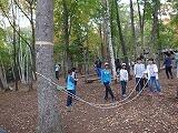 林業体験と森あそび、夕食のカレー作りと夜はお楽しみの館内きもだめしという一日でした。