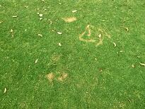 芝が人工的な影響で枯れている所がありました。