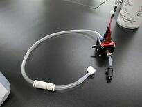 四角い黒いものが燃料電池(セル)。水素ボンベで水素を供給します。