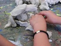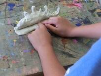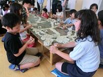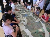 それぞれの子どもの世界が融合し合いながら粘土板の上の世界がつながっていきます。