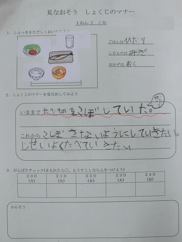 ご家庭でも、毎日の食事で、この学習を生かしてください。
