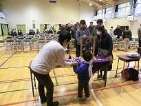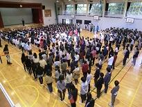 体育館にお集まりください。教室・廊下等の公開は致しません。