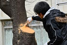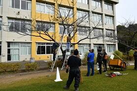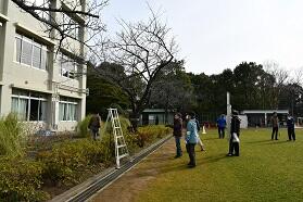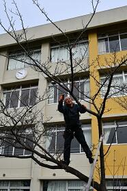 2月15日、おやじの会の方々がサクラの枝の剪定(せんてい)をしてくださいました。