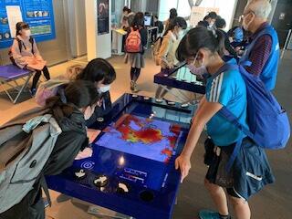 日本科学未来館では、小グループで様々な展示を見たり、体験したりしています。