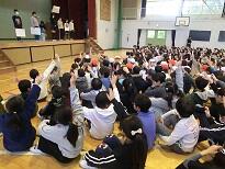 体育館の集会が終わると、1年生の教室に案内して、学校の様子を伝えたり