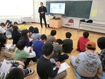 2月25日、校庭芝生の匠の方をお迎えして、芝生管理についてお話をお聞きしました。