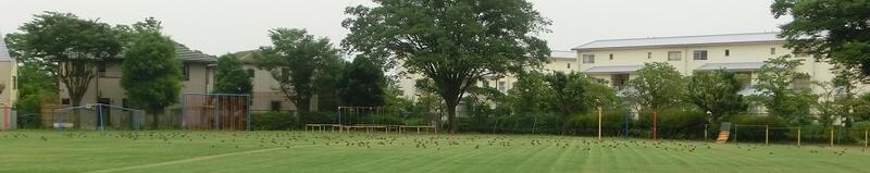 南鶴牧小学校にはよく来ます。芝生の上にも歩いています。