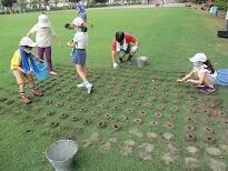 8月29日、全体での芝生管理作業の後に施肥をしました。