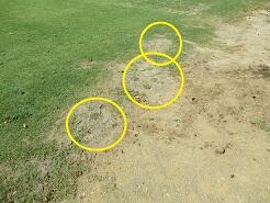6 土壌の凸凹には土壌の軟弱が原因ですが、今後の排水や児童の校庭遊びで改善します。