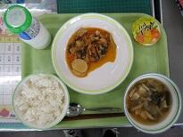 ごはん・豆腐とチンゲン菜のスープ・タッカルビ・マンゴーゼリー・低温殺菌牛乳でした。