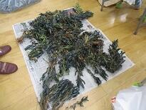 7月に刈って干して置いた藍の葉を取りました。