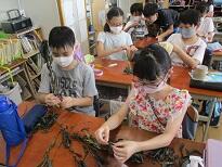 5年生は地域の方のご指導で総合的な学習の時間を使って藍(タデアイ)を育てています。