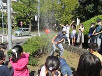 大きな地震で建物の水道管が壊れた時のために学校の入口に応急給水栓があります。