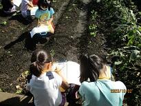 学校の果樹を中心に教材で活用できる植物を見て回りました。