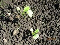 南北方向と東西方向と2方向から種をまいて群がないようにします。