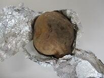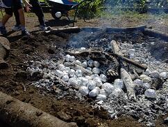 学校用務職員が火を起こして、ジャガイモを焼きました。