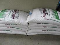 いつもまいている肥料を8袋まきました。最後に散水して終わりました。