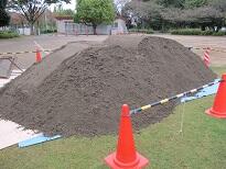 15㎥の砂をまきます。一日中まいていますがなかなか終わりません。