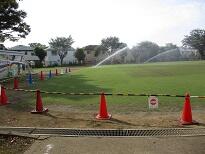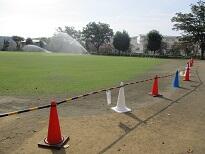 工事後、南鶴牧小グリーンネットワーク委員会(Gネット)の方が芝生養生のために