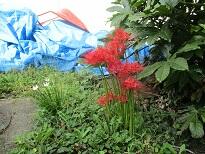 図工室東側の渡り廊下の横にヒガンバナが咲いています。